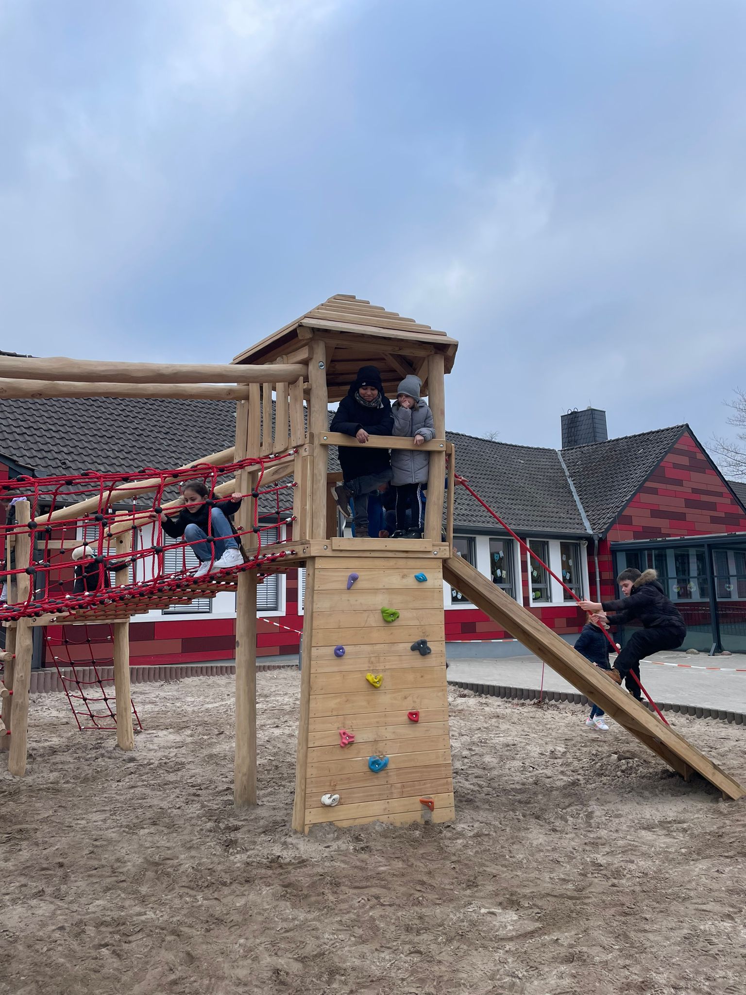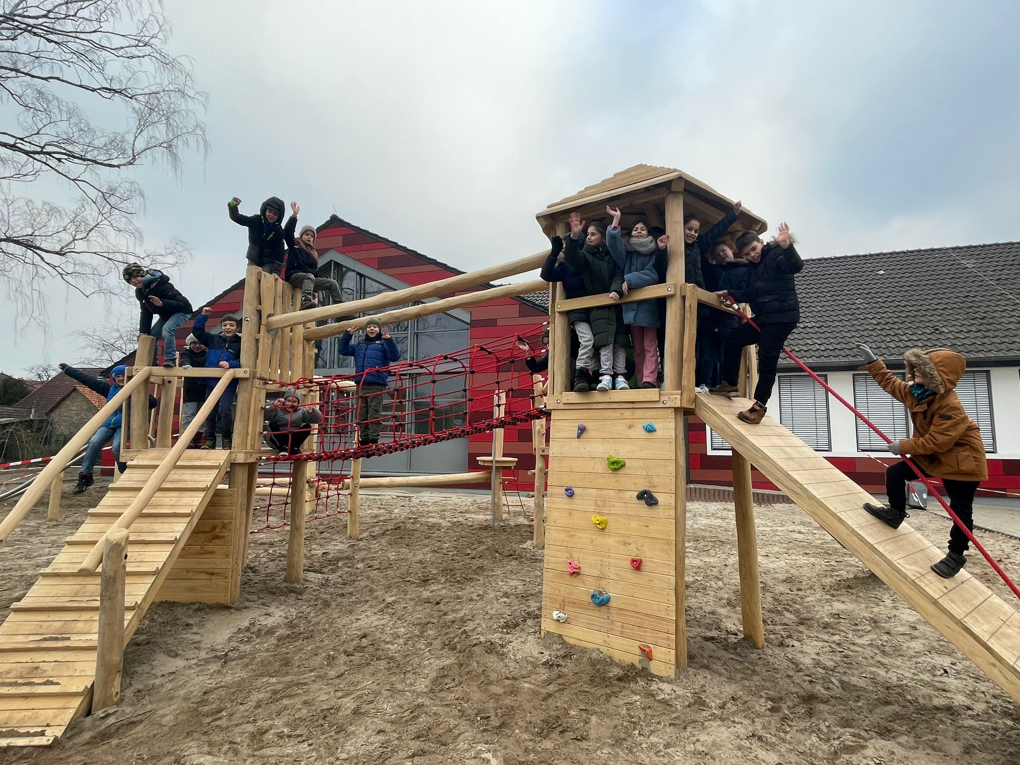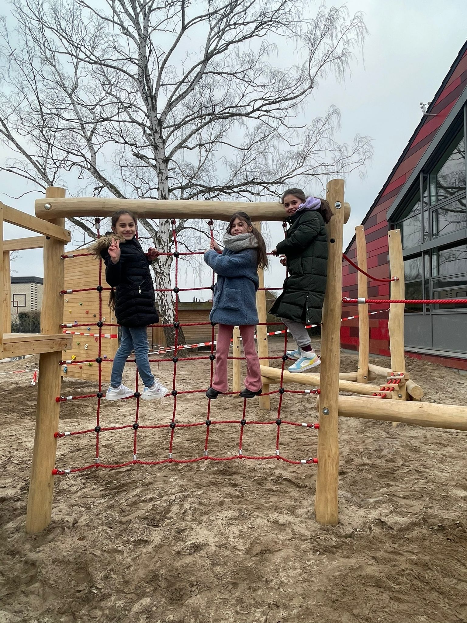 Die Schüler*innen sind sehr glücklich über dieses tolle Klettergerüst.