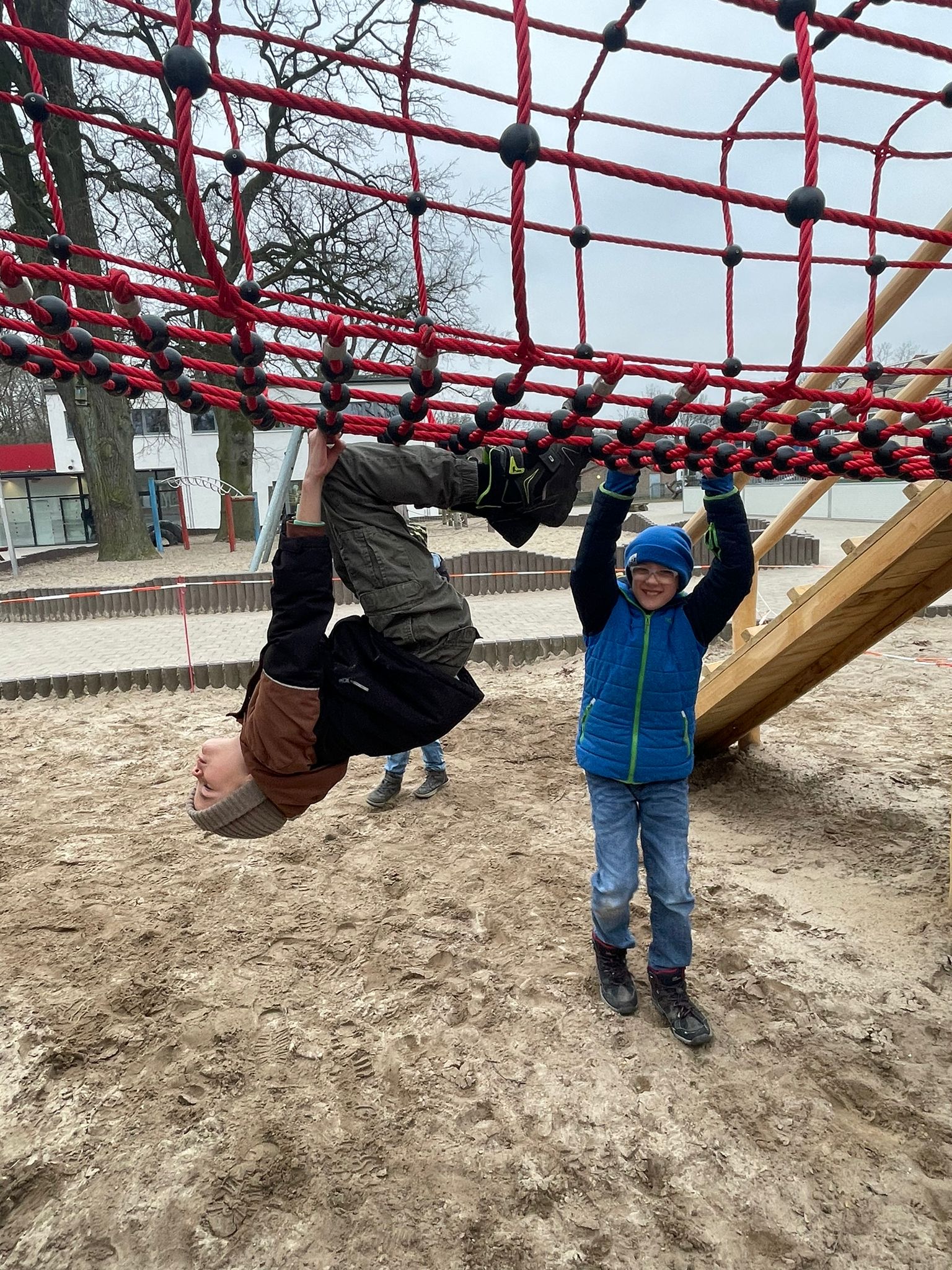 Aber kaum steht das neue Spielgerät, stürzen wir uns in neue Planungen: Bereits im Sommer 2024 werden die vorhandenen Pfähle, die im Sandbereich der großen Eichen und der Nestschaukel stehen, mit neuen Seilen bespannt.